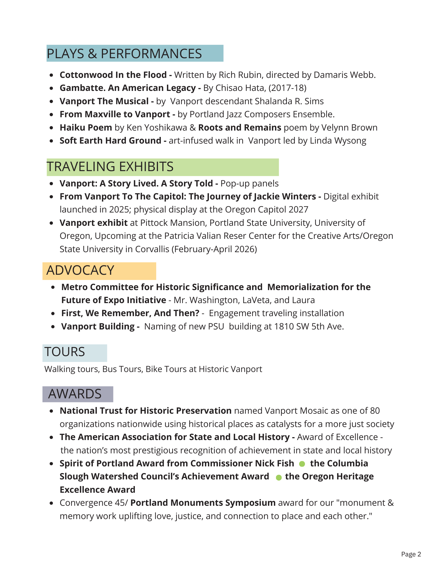 Working alongside the Vanport Memory Keepers is the honor of our lives, and we are proud to share with you what this tiny but mighty organization has accomplished in the past decade, telling stories WITH, and not about the community.